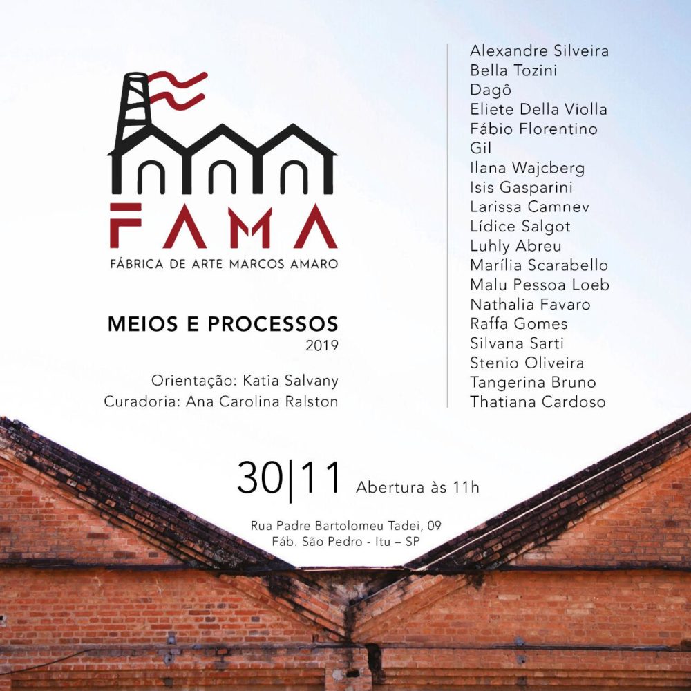 Meios e Processos Curadoria Ana Carolina Ralston Orientação Kátia Salvany Exposição realizada na Fábrica de Arte Marcos Amaro, Itú (SP) Catálogo da Exposição [ Catalogo_FAMA_2019_FINAL_BX ]